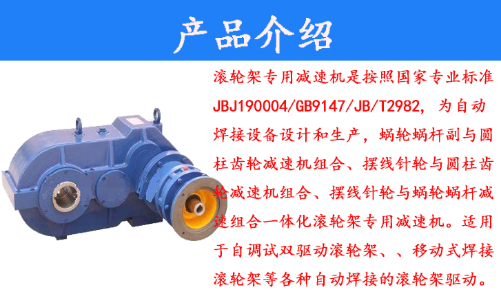 JA、JB、JC系列滾輪架專用減速機(jī)速機(jī)概述產(chǎn)品是按國(guó)家專業(yè)標(biāo)準(zhǔn)JB19004、GB9147、JB/2982.為自動(dòng)焊接設(shè)備設(shè)計(jì)和生產(chǎn)的:輪蝸桿與圓柱齒輪減速機(jī)組合、擺針輪與蝸輪蝸桿減速機(jī)組合的一體化滾輪等各種自動(dòng)焊接的滾輪架驅(qū)動(dòng)威速機(jī)適用范圍輸入轉(zhuǎn)速不大于1500轉(zhuǎn)/分,工作環(huán)境溫度為40%50%,如果低于0℃,啟動(dòng)前潤(rùn)滑油應(yīng)預(yù)熱0℃以上,本減速機(jī)可用于正反轉(zhuǎn)速機(jī)特點(diǎn)輪采用優(yōu)質(zhì)實(shí)素鋼,使用先進(jìn)的加工工藝,齒輪的精度高,接觸性好:輪采用ZA19-4鋁青銅、蝸桿采用40Cr浮火磨加工而,從而確保了輪蝸桿副的耐磨性,使用壽命長(zhǎng)。1、齒輪副傳動(dòng)效率大90%:輪蝸桿副傳動(dòng)效率大于65%;擺線針輪副傳動(dòng)效率大于90%2、運(yùn)轉(zhuǎn)平穩(wěn),噪音低3體積小,重量輕,使用壽命長(zhǎng),承載能力高4,易于拆檢,易于安裝1.型號(hào)有:JA一鍋輪蝸桿圓柱齒輪直輸出:B一擺線針輪圓柱齒輪平行輸出C一擺線針輪輪蝸桿垂直輸出:、規(guī)格有:JA型:JA2、JA3、JA4、JA5B型:JB1,JB2,B3,B4、JB5,JB6、JB7C型:JCI、JC2、JC3、JC4、JC5