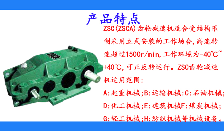 ZSC(ZSCA)齒輪減速機適合受結(jié)構(gòu)限制采用立式安裝的工作場合,高速轉(zhuǎn)速超過1500r/min,工作環(huán)境為-40℃~+40℃,可正反轉(zhuǎn)運行。
