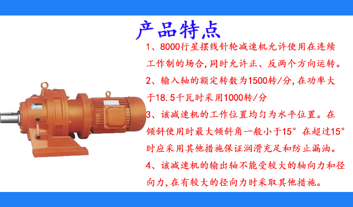 1、8000行星擺線針輪減速機(jī)允許使用在連續(xù)工作制的場合,同時(shí)允許正、反兩個方向運(yùn)轉(zhuǎn)。