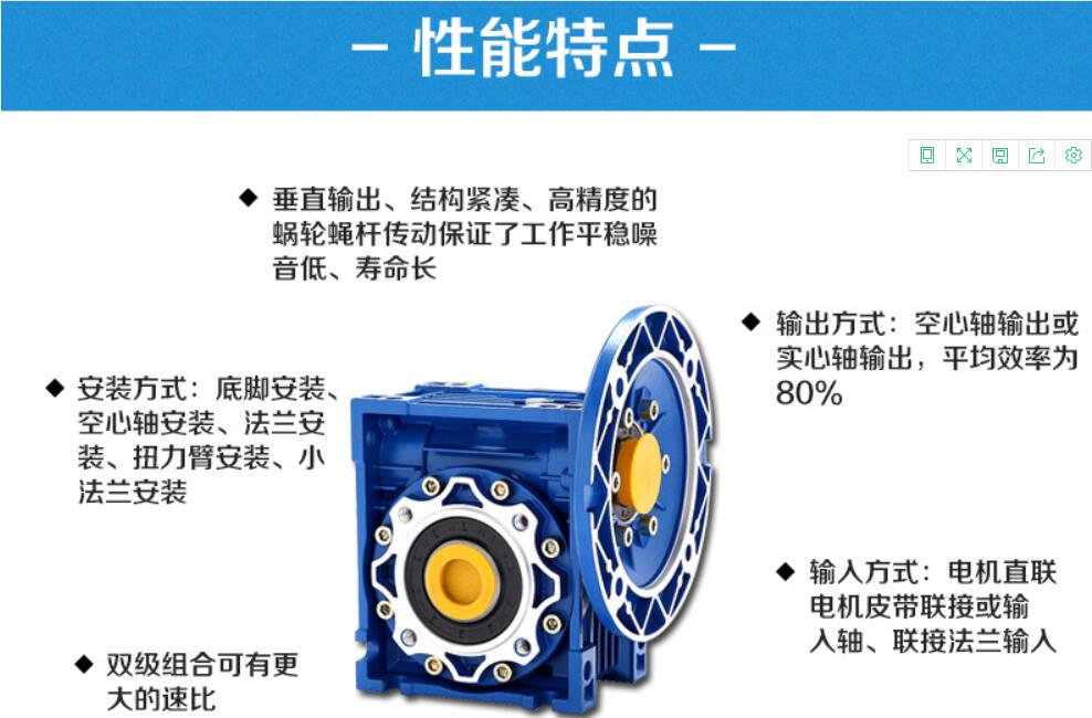 3.多面安裝、空心輸出軸結(jié)構(gòu),另配有各種輸人、出方式,并能方便的與其他積械組合,適應(yīng)性強(qiáng)