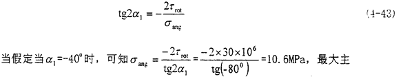此時主平面上的正應力平面的角度有這種關系:tg2α4=-∞,所以有α4=-45°或-135°,此時的最大應力值為σmax=30MPa