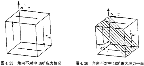 此時的受力圖中可以看出,附加的拉應力已經減小為零,實際上單元體受力其實屬于純剪切狀態(tài),