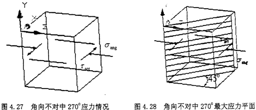(3)角向不對中270°位置:當圓環(huán)上的單元體旋轉到最下方時,也就是270°位置時,單元體的應力如下圖所示