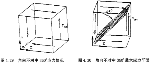 (1)角向不對中900位置:當圓環(huán)上的單元體旋轉到最上方時,也就是900位置時,單元體的應力如下圖所示