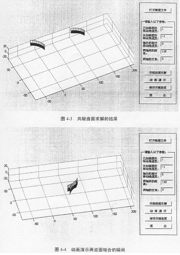 點(diǎn)擊Conjugater1.0界面中的“動畫演示”按鈕,可以直觀地看到兩齒面轉(zhuǎn)動和嚙合的過程。