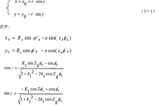 zg——擺線輪齒數(shù); e——偏心距; r——針齒半徑; φ′b——針齒中心相對擺線輪中心轉(zhuǎn)過的角度; Rz——針齒分布圓半徑;