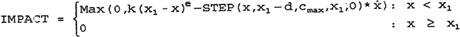 本論文中所定義的接觸力都是基于IMPACT函數(shù)的接觸模型。在ADAMS中定義IMPACT函數(shù)的方程為: