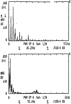 如圖6-14、圖6-15、圖6-16、圖6-17、圖6-18、圖6-19及圖6-20示,圖中示出了各種工況下,頻率范圍為0~500HZ和0~2KHZ速度自功率譜密度函數(shù)的對比,從圖中可以看出,速度自功率譜密度函數(shù)值主要集中在500HZ頻率范圍內(nèi),這樣,我們以0~500HZ的范圍來計算均方根速度的精度是足夠的。根據(jù)CF-355內(nèi)部設(shè)置知時間