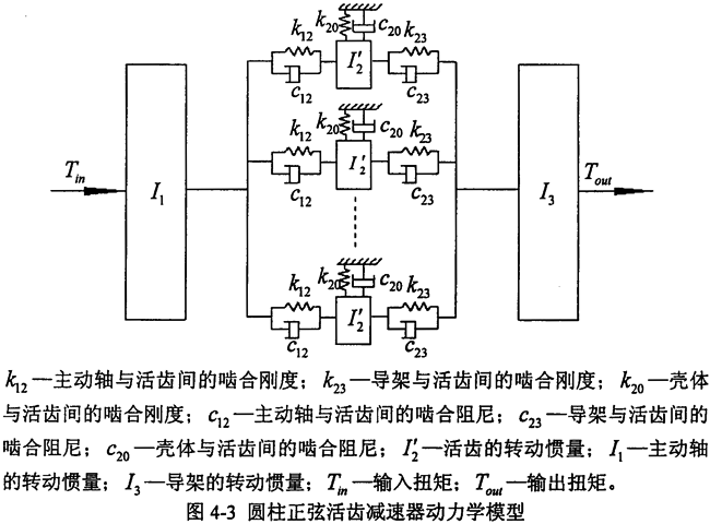 機(jī)械傳動(dòng)系統(tǒng)把運(yùn)動(dòng)和動(dòng)力由動(dòng)力源傳遞給機(jī)器執(zhí)行件的工作過程中,經(jīng)常會(huì)受到激振力和激振力矩的作用,從而使傳動(dòng)系統(tǒng)的零部件產(chǎn)生扭轉(zhuǎn)振動(dòng),振動(dòng)將直接影響到機(jī)械系統(tǒng)的精度、效率、壽命、安全性和可靠性,由此而產(chǎn)生的噪音也對(duì)環(huán)境產(chǎn)生干擾和危害。因此在設(shè)計(jì)機(jī)械傳動(dòng)系統(tǒng)時(shí),必須考慮將振動(dòng)的量級(jí)控制在一定范圍內(nèi),以保證系統(tǒng)具有良好的動(dòng)態(tài)特性。為設(shè)計(jì)高性能的圓柱正弦活齒減速器,了解該傳動(dòng)系統(tǒng)的動(dòng)態(tài)特性,有必要對(duì)其進(jìn)行扭振動(dòng)力學(xué)分析,以便評(píng)價(jià)其振動(dòng)水平,并找出影響動(dòng)態(tài)特性的薄弱環(huán)節(jié),從而為進(jìn)一步動(dòng)態(tài)結(jié)構(gòu)優(yōu)化設(shè)計(jì)、提高減速器的動(dòng)態(tài)性能提供了理論依據(jù)。評(píng)價(jià)傳動(dòng)裝置的動(dòng)態(tài)性能通常有試驗(yàn)法和計(jì)算法兩種方法。一般情況下,試驗(yàn)法可獲得較準(zhǔn)確的結(jié)果,但只適用于評(píng)價(jià)給定的實(shí)物或模型。而計(jì)算法通過建立動(dòng)力學(xué)模型,在設(shè)計(jì)階段就可獲得評(píng)價(jià)系統(tǒng)動(dòng)態(tài)性能所需的各種數(shù)據(jù)資料,并可根據(jù)分析結(jié)果來進(jìn)行優(yōu)化設(shè)計(jì),從而在設(shè)計(jì)階段就能得到一個(gè)具有良好動(dòng)態(tài)特性的系統(tǒng)設(shè)計(jì)方案,因此計(jì)算方法比試驗(yàn)法更經(jīng)濟(jì)實(shí)用,但數(shù)學(xué)模型的建立具有一定的難度。