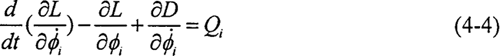 將式(4-3)代入拉格朗日方程(4-4)中,得到系統(tǒng)的動(dòng)力學(xué)方程如下所示: