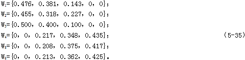 W={0.25,0,30,0.20,0.10,0.10,0.05} (5-34)
