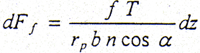 設(shè)內(nèi)、外齒輪軸線間有一相對(duì)轉(zhuǎn)角振幅ε0,如圖2.11所示,在齒z處dz上的摩擦力
