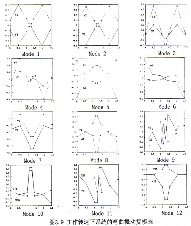 表3.3 按‘等效軸’法計算得不同轉(zhuǎn)速下系統(tǒng)的特征值