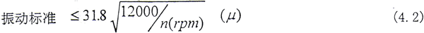 根據文獻[9],機組振動都是以軸承的振動為標準,設備制造驗收標準以美國API、日立、GB、FB(風機專業(yè)標準)順序執(zhí)行。其中API617—1979中2.8.25節(jié)關于轉軸(靠近軸承的任何截面)振動標準