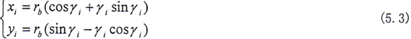 設(shè)Si(oixiyizi)坐標(biāo)系是與內(nèi)齒套固連的動坐標(biāo)系,如圖5.2所示。xi軸與內(nèi)齒套某一齒的一側(cè)齒形相交于基圓(半徑為rb)上,z軸與內(nèi)齒套軸線重合,oi為坐標(biāo)原點(diǎn)。設(shè)S(oxyz)坐標(biāo)系為固定坐標(biāo)系,則有