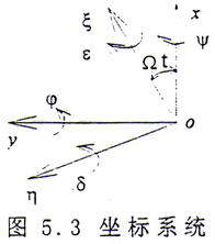 如果將(5.11)式變換到旋轉(zhuǎn)坐標(biāo)系oξηz中,則有