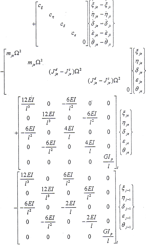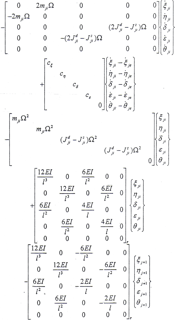 加到相應(yīng)結(jié)點(diǎn)處的運(yùn)動方程的左邊,即可得到在旋轉(zhuǎn)坐標(biāo)系中的軸承—轉(zhuǎn)子—齒輪聯(lián)軸器系統(tǒng)的運(yùn)動微分方程。