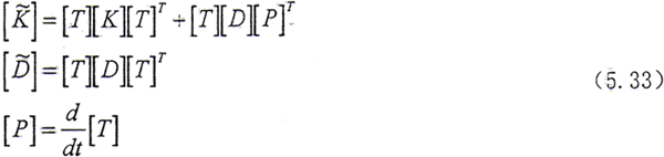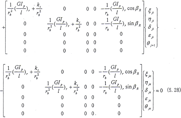 (5.27)式、(5.28)式中所定義的Ω方向與Z軸方向相同,當(dāng)Ω方向與Z軸方向相反時(shí),Ω以-Ω代入即可。從上式可見,方程系數(shù)矩陣中的元素與βE有關(guān),而βR又與系統(tǒng)的廣義坐標(biāo)有關(guān),因此方程是非線性的。只有在βR變化很小時(shí)才能進(jìn)行線性分析。