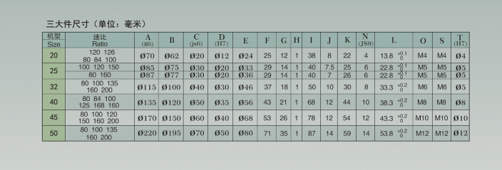 優(yōu)點: 1、結構簡單,采用一個柔輪、兩個鋼輪和一個波發(fā)生器 。 2、傳動速比大,單級減速可速比范圍50:1---200:1 3、承載能力高,嚙合赤數(shù)多,雙波傳動,柔輪采用高強度材料,齒與齒之間是面接觸。 4、精度高,嚙合齒數(shù)多,誤差平均化,即齒嚙合對誤差有相互補償作用?刹捎梦⒘扛淖儾òl(fā)生器半徑增加柔輪的變形使齒隙很小甚至做到無側隙嚙合。 5、體積小,結構簡單,可以做到小體積大速比。 6、可向密閉空間傳遞運動。 7、相位調節(jié),多應用與印刷機械。缺點: 不利于用在傳送比小于50的場合。應用范圍: 大多應用在印刷機械,做相位調節(jié)用。
