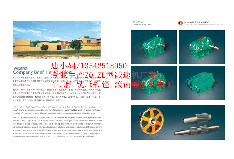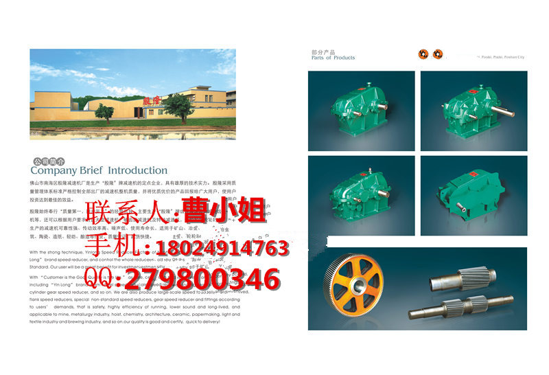 本企業(yè)始終奉行“質量高,用戶至上”的經營宗旨,主要生產“殷隆”牌齒輪減速機,蝸輪蝸桿減速機等,還可以根據用戶要求訂造大型減速機,硬齒面減速機及特種減速機,齒輪和其他機械配件,所生產的減速機可靠性強、傳動效率高、噪音低、使用壽命長,適用于礦山、冶金、起重、化工、建筑、陶瓷、造紙、輕紡、釀酒等行業(yè),質量保證,起貨快捷。  佛山松卓減速機械有限公司是一家私營企業(yè),法人代表張民柱,所在地區(qū)位于廣東佛山市,主營產品或服務為各種減速機,非標減速機,齒輪減速機,JZQ減速機,ZQ減速機,Z