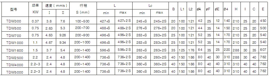 一、電動推桿概述: DT系列電動推桿是一種將電能轉(zhuǎn)換成往復(fù)運(yùn)動機(jī)械能的通用機(jī)械手,適用于各種復(fù)雜或簡單的工藝流程,具有結(jié)構(gòu)緊湊,安裝方便,使用可靠,維修簡單,節(jié)約能源等優(yōu)點。與液壓氣動系統(tǒng)相比,不但省掉了繁雜的系統(tǒng)和減輕了重量,而且不受氣候及環(huán)境的限制,可實現(xiàn)遠(yuǎn)距離集中或自動控制,廣泛應(yīng)用于冶金、礦山、電力、煤炭、交通、糧食、化工、建材等部門。 二、電動推桿結(jié)構(gòu)與性能: 1、結(jié)構(gòu): 電動推桿由電動機(jī)、減速齒輪、絲桿、銅螺母、導(dǎo)向套、活塞桿、軸承座、軸承座、彈簧、缸筒座、聯(lián)接叉及光電接近開關(guān)裝置(用戶選購)等部件所組成。 2、工作原理: 電動機(jī)通過一級或二級齒輪減速后,帶動絲杠螺母付,把電動機(jī)的旋轉(zhuǎn)運(yùn)動變?yōu)橹本運(yùn)動,利 用電動機(jī)正反轉(zhuǎn)實現(xiàn)推桿往復(fù)動作。輸出推拉力相等。通過各種杠桿力臂長度,可以增長行程。 3、過載自動保護(hù)功能: 電動推桿內(nèi)過載自動保護(hù)裝置,當(dāng)推桿行程到極限位置或負(fù)載超過額定推力一定數(shù)值時,推桿 將自動切斷電源,起到保護(hù)作用,使電動機(jī)及其它構(gòu)件不致?lián)p壞,但不得以此作為正常運(yùn)行時的限 位開關(guān)使用。因此要求在本機(jī)上另行配置外行程限位開關(guān)裝置,本廠可為用戶配置光電接近開關(guān)裝 置,以控制推桿正常起停。 ![]() |