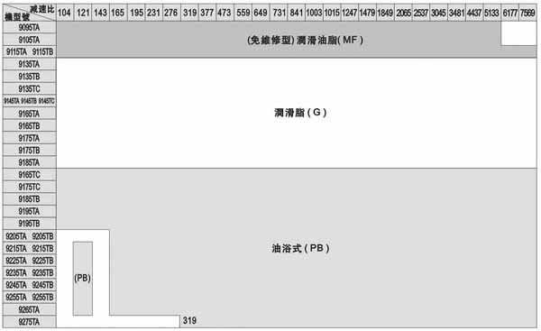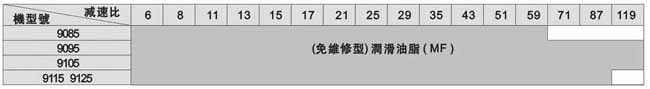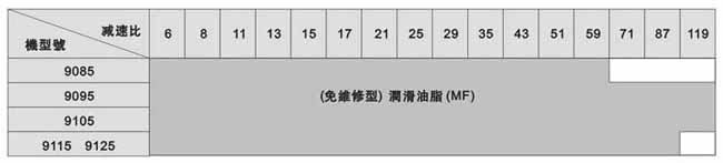 注:此表所列為輸入轉(zhuǎn)速為標(biāo)準(zhǔn)轉(zhuǎn)速情況下,標(biāo)準(zhǔn)潤(rùn)滑方式。