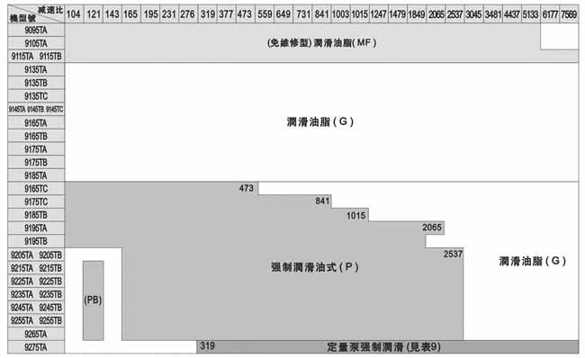 TP:定量泵強(qiáng)制潤(rùn)滑(見(jiàn)表9)