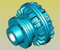 | 鋼砂式安全聯(lián)軸器JB/T5986-92產(chǎn)品簡(jiǎn)介 鋼砂式安全聯(lián)軸器的工作過(guò)程是:當(dāng)電動(dòng)機(jī)起動(dòng)時(shí),電動(dòng)機(jī)帶動(dòng)殼體旋轉(zhuǎn),殼體內(nèi)表面通過(guò)摩擦力帶動(dòng)鋼砂旋轉(zhuǎn),從而帶動(dòng)與從動(dòng)軸相聯(lián)接的轉(zhuǎn)子旋轉(zhuǎn),因此,電動(dòng)機(jī)近似于空載起動(dòng)。隨著電動(dòng)機(jī)轉(zhuǎn)速的加快,鋼砂在離心力作用下緊貼殼體的摩擦力矩逐漸增大,殼體與轉(zhuǎn)子達(dá)到同步動(dòng)轉(zhuǎn)狀態(tài),此時(shí)轉(zhuǎn)子與殼體不再存在轉(zhuǎn)速差。由起動(dòng)到主、從動(dòng)軸同步運(yùn)轉(zhuǎn),一般不超過(guò)數(shù)秒。
