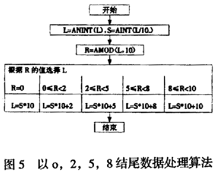 3)以0,2, 5, 8結(jié)尾圓整,此種圓整較為麻煩,我們用下邊算法實(shí)現(xiàn)之。