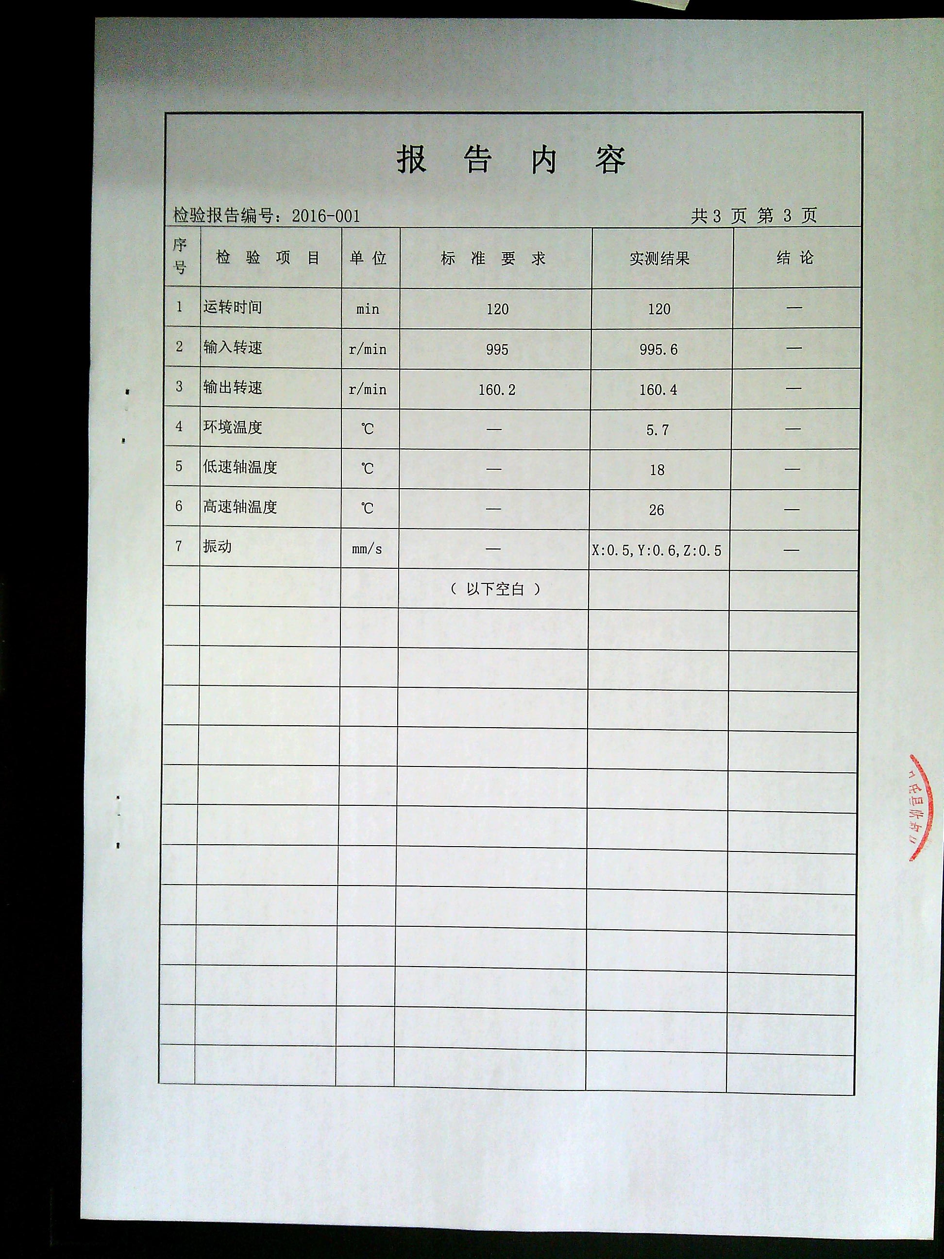 減速機(jī)檢驗報告